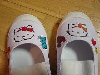 どんどんキティちゃんにはまっていく、娘の上靴デコのリクエストは、やっぱりキティちゃん。