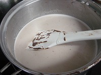 更に更に、チョコレートが残りこべりついた鍋に、牛乳を加えればホットチョコレートも出来ちゃう。今回は残りの量が足らなかったので、砂糖を加えて味を調えてまぁす。