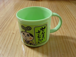 子供用のコップでもちろん息子用なんですが、今年からNHKでやっている「ぜんまいざむらい」グッズを買ってきたというネタを私におみやげなんだとか。